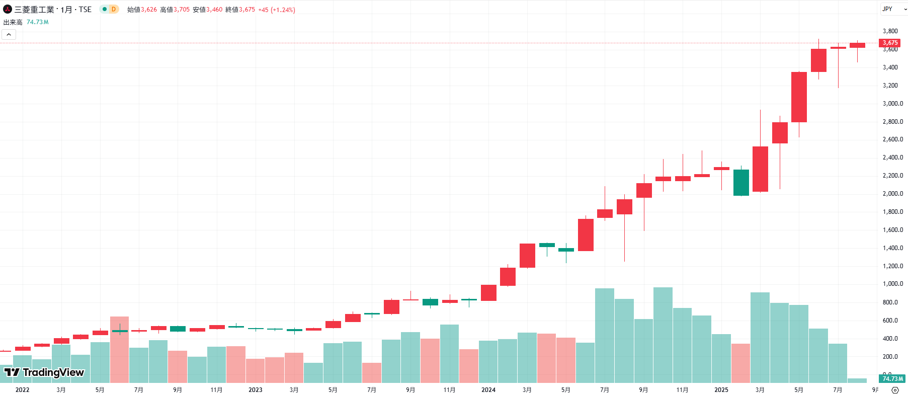 さらに、宇宙や原子力、エネルギーといった国家戦略に関わる領域にも強く、中長期の国家予算と連動した安定性が魅力です。防衛費の拡大が追い風になる銘柄として、初心者にも注目されています。
