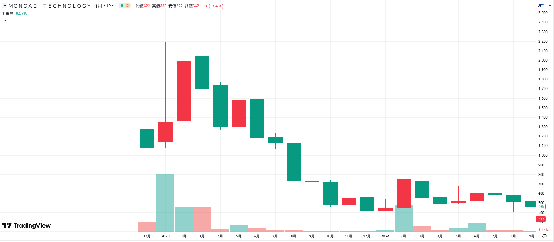 2022年、メタバース開発エンジンを手がけるmonoAI technology〈5240〉は、上場直後に「メタバース」というキーワードが材料視され、株価は公開価格の3倍以上に急騰しました。話題の中心にいたことで個人投資家の注目を集め、大きな値幅が出た事例です。うまく流れに乗れば短期でもリターンが狙えるという好例ともいえます。