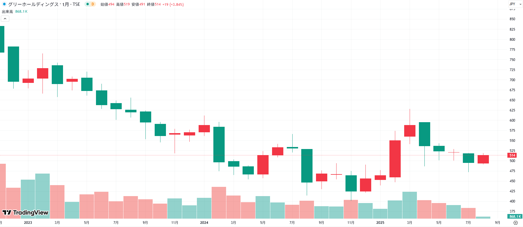 メタバース関連は、展示会や連携ニュースなどちょっとした材料で急騰することがありますが、同じように「材料が一段落しただけ」で一気に下がるケースもあります。
